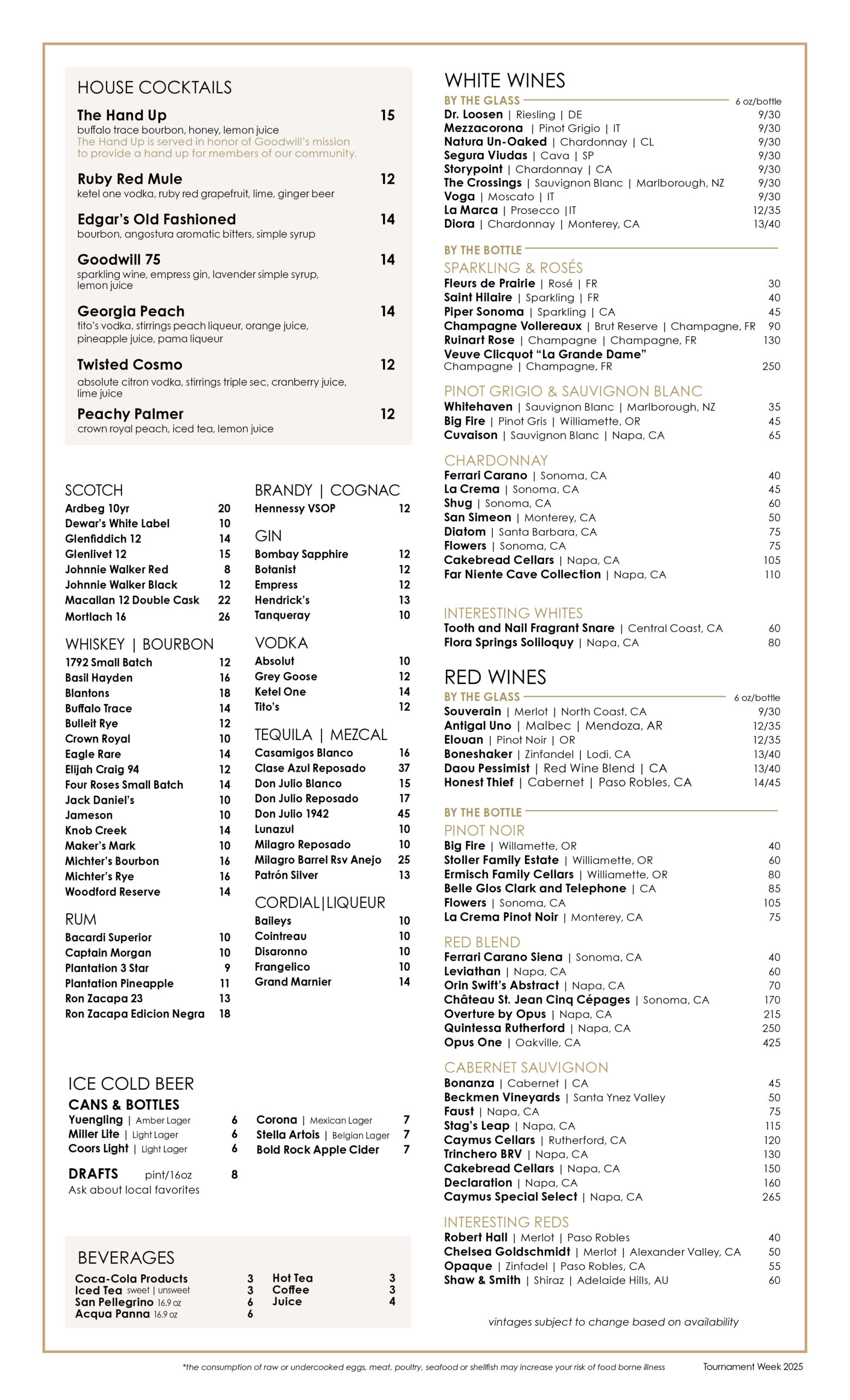 Vintages are subject to change based on availability